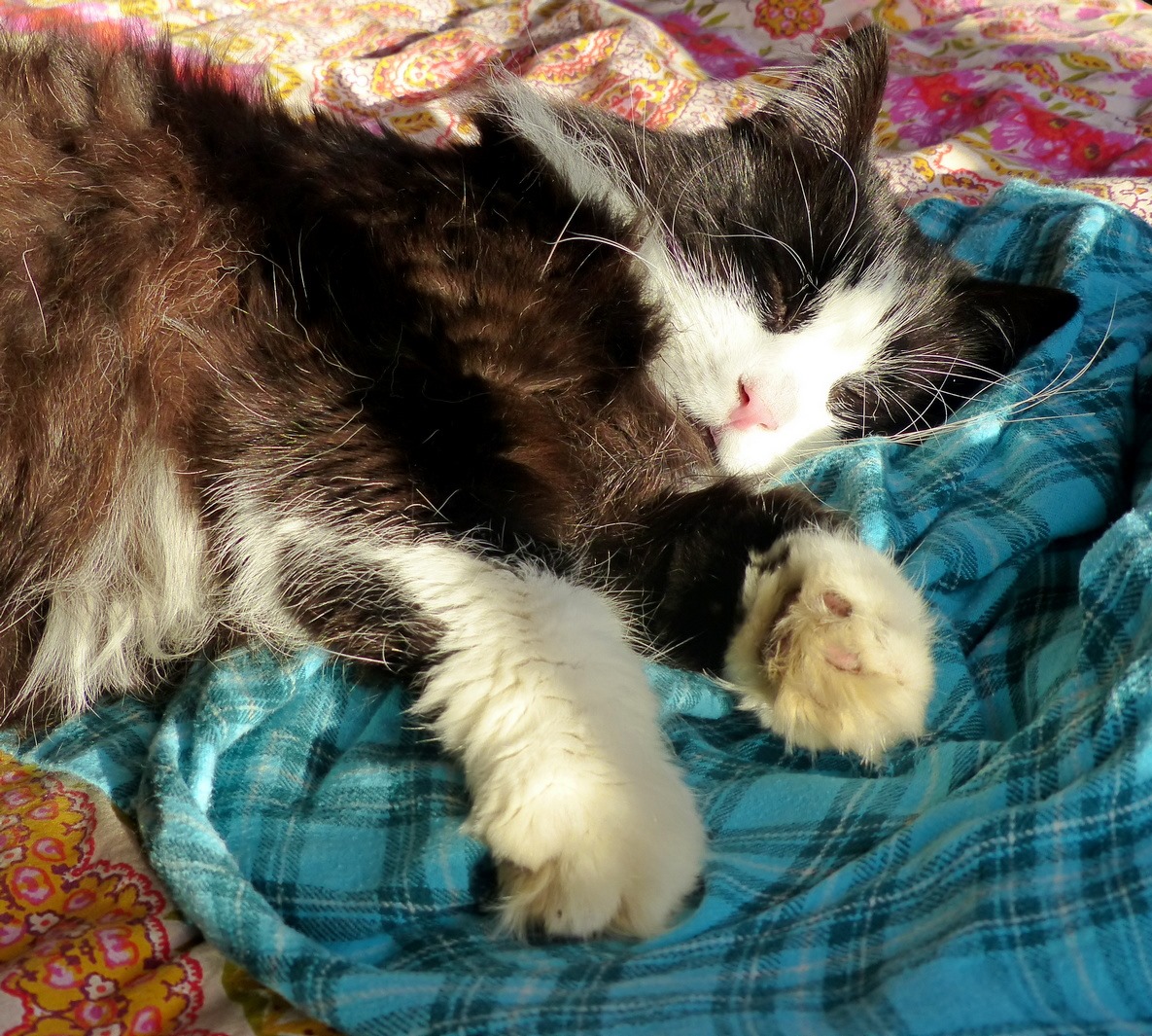 Vannacht bv ligt ze de hele nacht op bed in mijn armen hoewel om de een of andere reden de verwarming in de slaapkamer het niet doet en nu de harde wind op het slecht geïsoleerde huis staat is het daar stervenskoud.