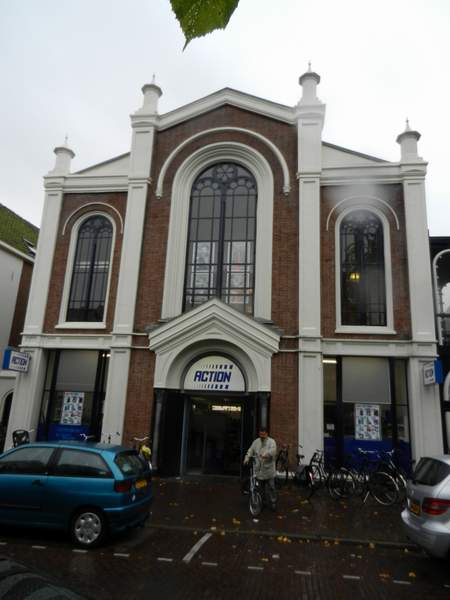 Deze vriendelijke kerk staat op Maden 31, de mooiste straat van Hoorn; het doet dienst als filiaal van ramsj-warenhuis Action. Er rust geen vrede op dit godshuis. Directeur Deen wil – zie ik op hoorng!ds.nl – uitbreiden, hier of elders in de hoornse binnenstad. “Wij zijn veroordeeld tot dit kleine kerkgebouw. Er is niks en mag niks in Hoorn.”