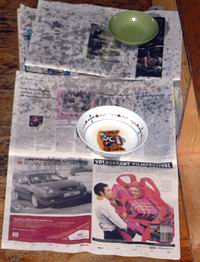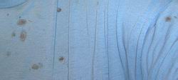 Op het kussen dat naast het weggehaalde beplaste kussen ligt (en een stukje ernaast op waar mijn kussen hoort). Alweer uren.