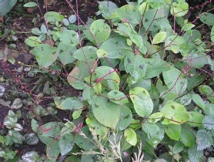 Ik wil foto’s maken van de plek waar mogelijk het tuinhuisje/schuurtje komt om beter met R. te kunnen overleggen. Dus baan ik me een weg naar de andere kant van de tuin door erg veel onkruid en dan opeens: deze plant.