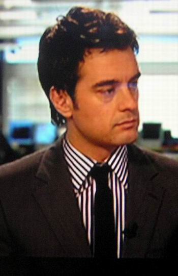 Rik is altijd mooi. Werkelijk álles staat ‘m goed. Vandaag een erg mooi gestreept overhemd, casual maar toch ook niet echt. Hij blijft sjiek. En zelfs -zoals laatst- in zwart met wit (overhemd) en grijze das waarin iedereen eruit zou zien als een saaie dweil: prachtig. Waarmee hij een lust voor het oog is (‘eye candy’ zoals Femke dat noemt). Maar erover filosoferen (wat staat wel, wat niet, hoe zit z’n haar -bij Rik altijd goed-, kijkt-ie slaperig -Rik nooit-) dat lukt toch beter bij Jeroen Tjepkema.