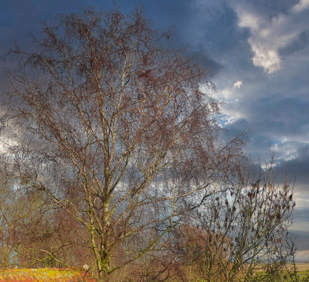 Aan de sloot staat een gote wilgenboom.