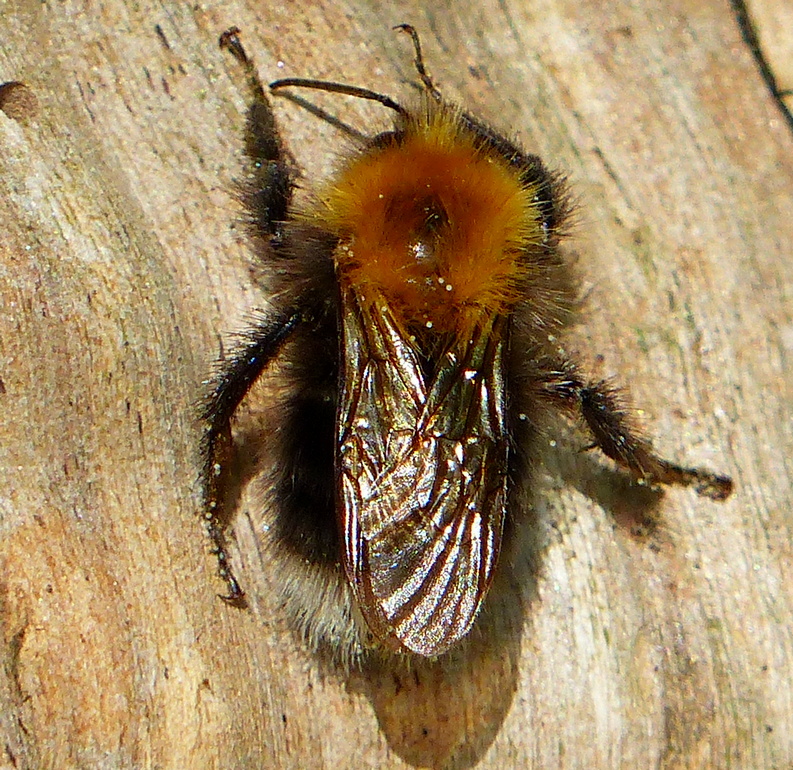De Boomhommel (Bombus hypnorum) is gemakkelijk in het veld te herkennen aan het roodbruine borststuk en de witte achterlijfspunt. De kop is iets korter dan die van de Akkerhommel. Sommige werksters hebben een donkerder gekleurd borststuk maar altijd een wit kontje.
