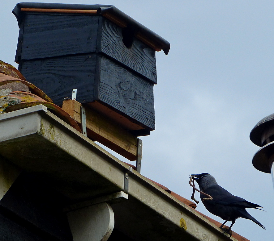 Ik schreef hier laatst over de kauwtjes die al jaren een gat tussen mijn dakpannen betrekken om daar te gaan broeden.
