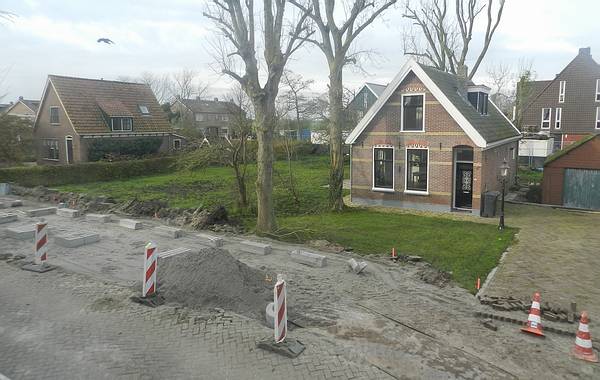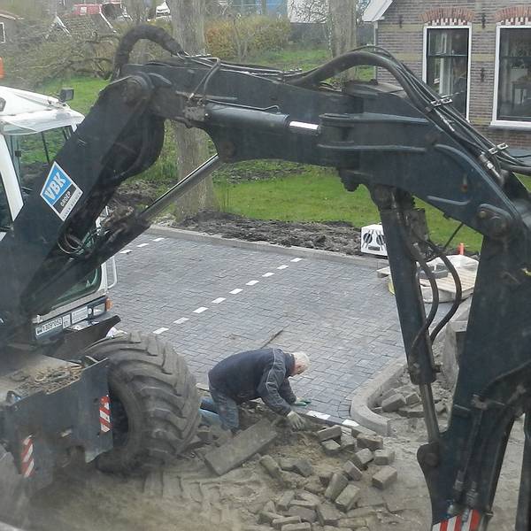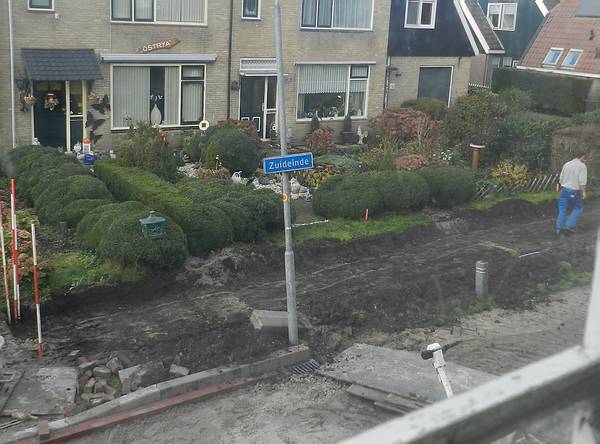 Want de parkeerplaats is nog niet gelegd of de grote graafmachine heeft de hele straat opengehaald.