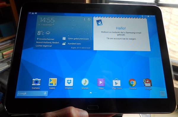 Na adviezen (Apple! Apple! Apple!) werd het een Samsung Galaxy Tab 4. met 10.1 inch beeldscherm = 25 cm.