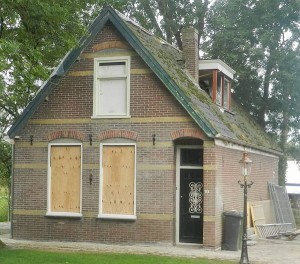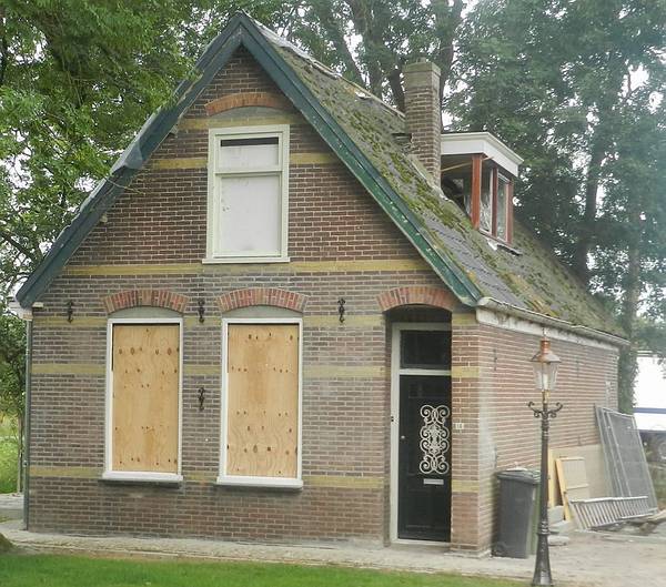 Recht tegenover mijn huis staat een klein huisje met een grote lap land.