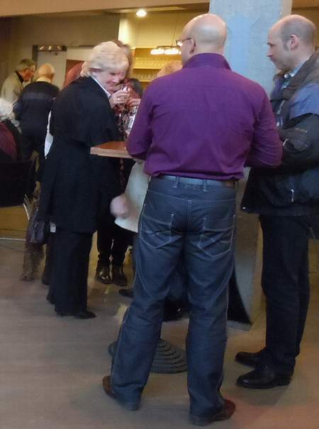 Ik haal R. om kwart over 1 op (het begint om half 3) en we zijn veel te vroeg dus rijd ik wat rond en dan blijkt een stuk buitenwijk afgesloten ivm ‘filmopnamen’ en dan halen we het nog op het nippertje. Ook nog bijna 4 plompverloren overstekende ganzen doodgereden. Alsof het met de stress niet op kon.