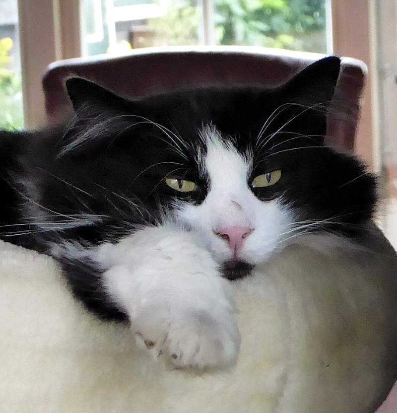 Dan komt Loki op bed en terwijl ik op mijn buik lig na te slapen legt hij zijn lieve hoofdje op mijn schouder, sluit de mooie oogjes en zet zachtjes de spinmachine aan.