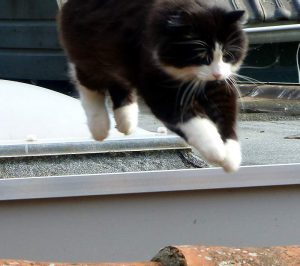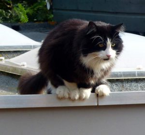 Niet hinderlijk (vind ik, die wat gewend is met mijn vorige katten).