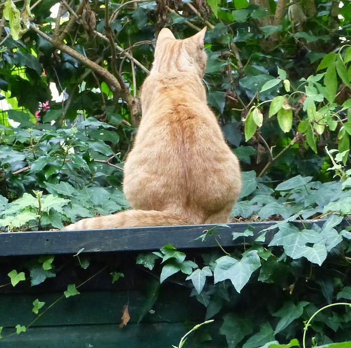 Ik fantaseer dat hij mogelijk ‘gewoon’ achterin de tuin wat ligt te suffen.