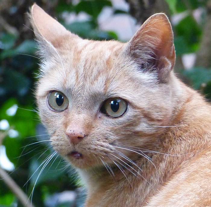 Na een tijdje draait de kat het hoofdje naar me toe.