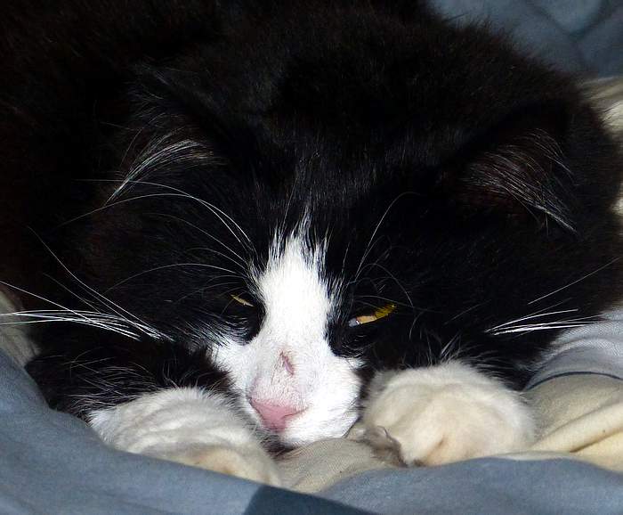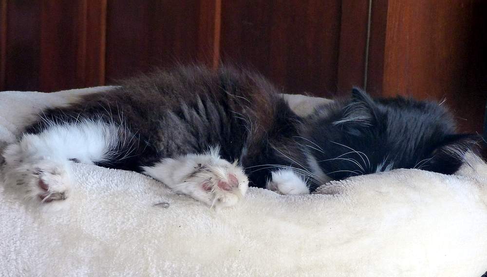 Nu, om zes uur: Loki is terug en ligt hevig spinnend op mijn bureau.