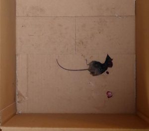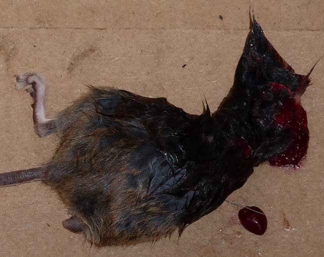 Maar ik voelde direct zijn vacht en daar zaten druppels op en die kan hij niet hebben gevangen tussen het kippenhok en de deur.
