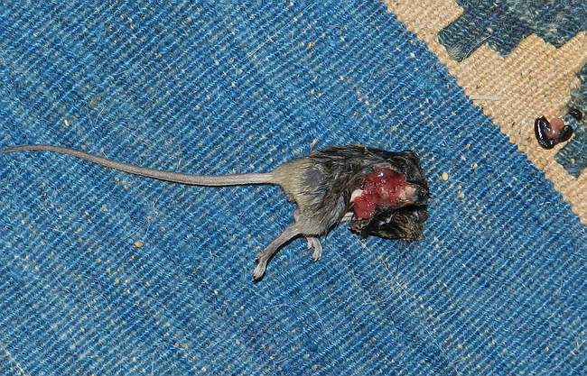 Keurig neergelegd bij het lijkje van gisteren dat ik nog niet had opgeruimd.