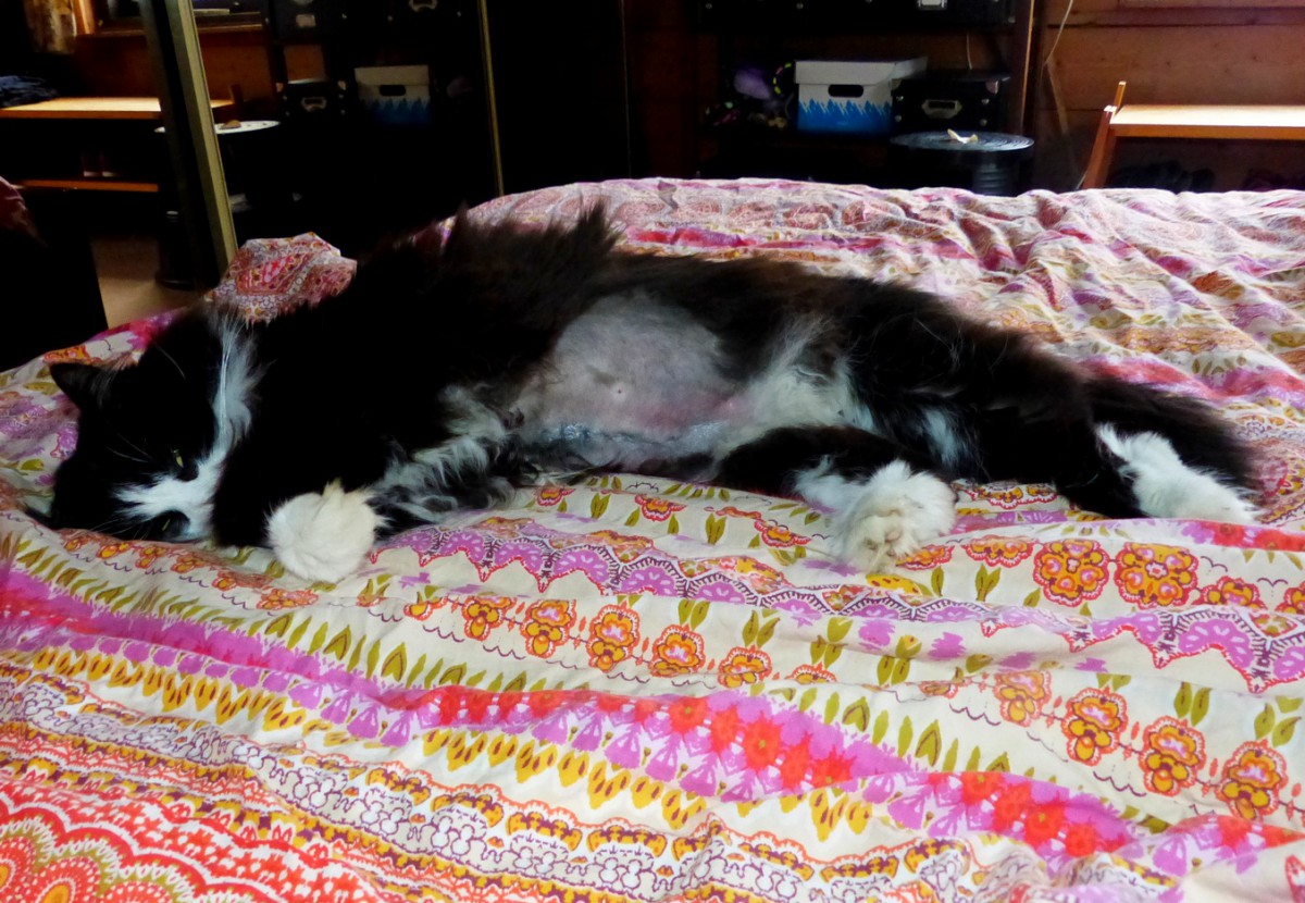 Toen Loki naar de dierenarts gebracht die 4(!) tanden en kiezen verwijderde en gistermiddag kwam hij groggy terug en hij moest twee dagen binnen blijven (wat niet lukte) en nu doet Loki of alles weer normaal is.