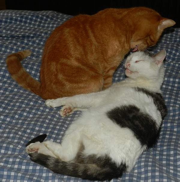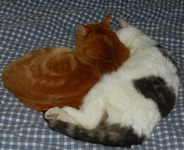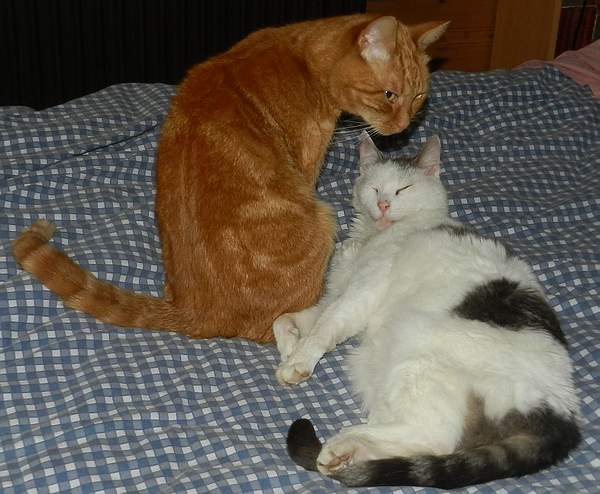 Gisteravond. Ik had de slaapkamerdeur dichtgeduwd maar Guus had ‘m geforceerd en toen ik naar bed ging: twee katten aan het voeteneind.
