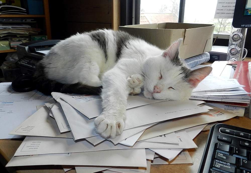 Ik neem een stapel ongeopende enveloppen mee naar boven, rits ze 1 voor 1 open en sorteer.