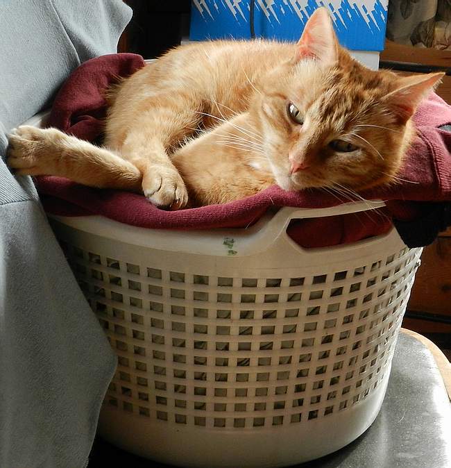 En het duurt een dag maar dan snapt Guus het en is het grijze geval zijn lekker warme bedje.