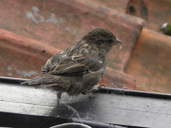 Ik bekijk het musje. Alles zit er nog aan. Geen grote wonden, geen lamme vleugels of pootjes.