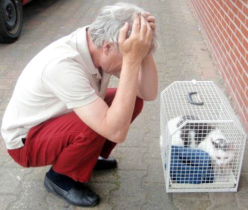 Maar ik leg uit dat ik mijn katten al niet aan kan laat staan een hond.