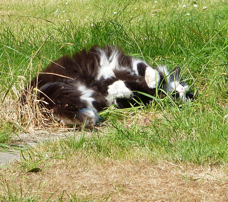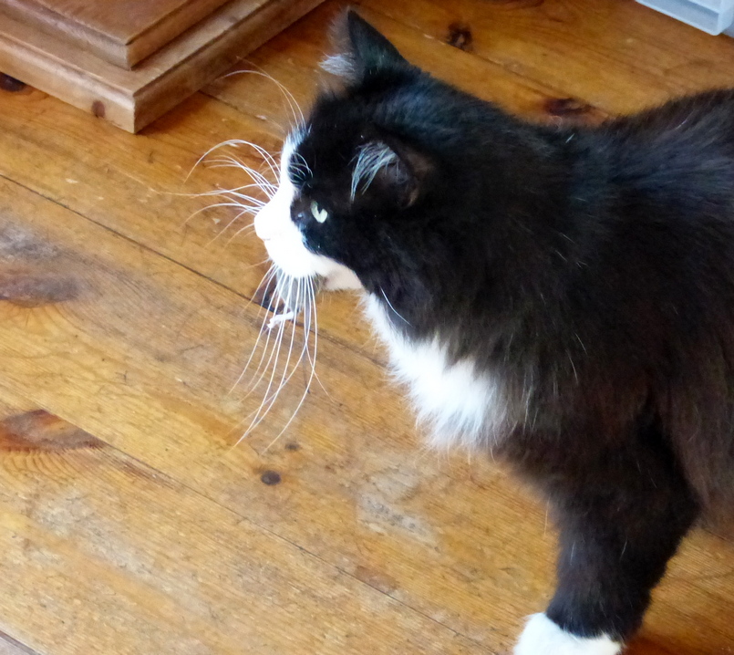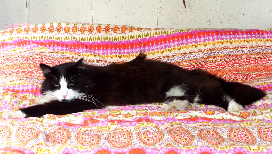 Dit keer is hij de eerste dag wel wat van slag: hij kneedt een uur lang terwijl ik probeer wat bij te slapen, gaat dan tegen me aan liggen maar is daarna ook weer weg.