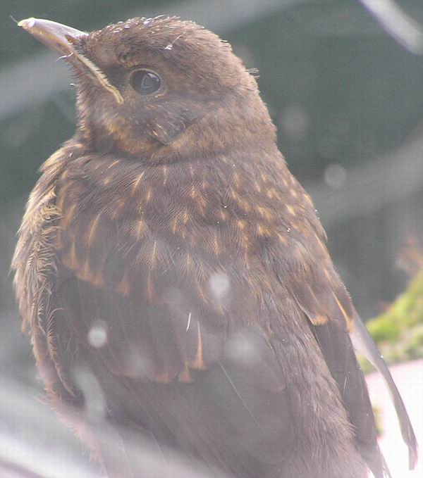 Wanneer hij weer terug is, nat en bang, plak ik er dikke stroken plakband op.