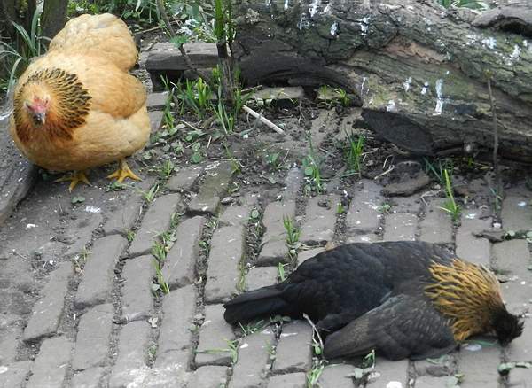 Ik maakte twee filmpjes van de kippen die een zandbad namen.