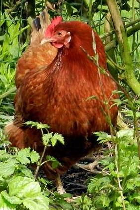 Ze is een hybride legkip die al ruim drie jaar hier woont.