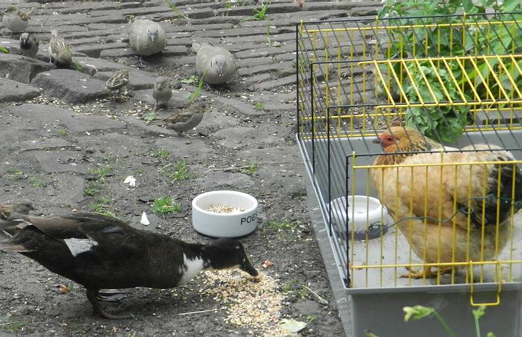Die wil iets lekkers, denk ik. Dus werp graan.