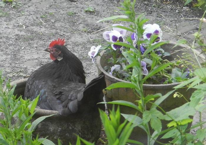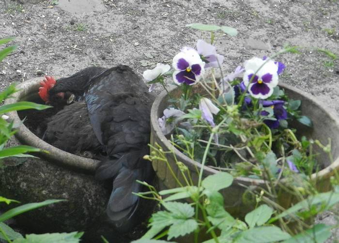 Er is een hoop los zand in mijn tuin waarin je als kip aangenaam een bad kunt nemen.