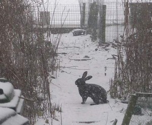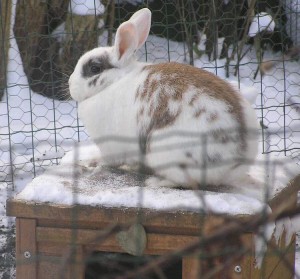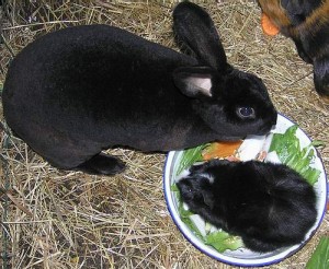 Als er eten komt (waar ze enthousiast om fluit) holt ze de hele ren op en neer, ze pakt een stukje wortel, holt ermee een hok in en komt er dan ook weer uit met dat stukje wortel en legt het neer naast de bak en springt er dan in en eet (bv) andijvie.