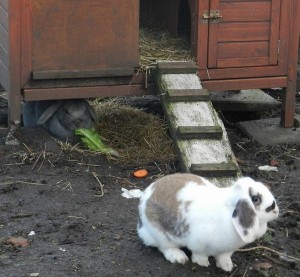 Nu blijkt dat beide konijnen al dagenlang vrolijk heen en weer zijn gegaan tussen de ren en de voortuin.