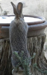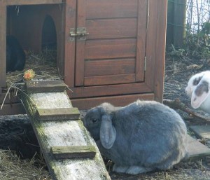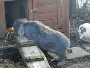 Gisteren duurt het erg lang voor ik de konijnen in de ren naast het huis zie.