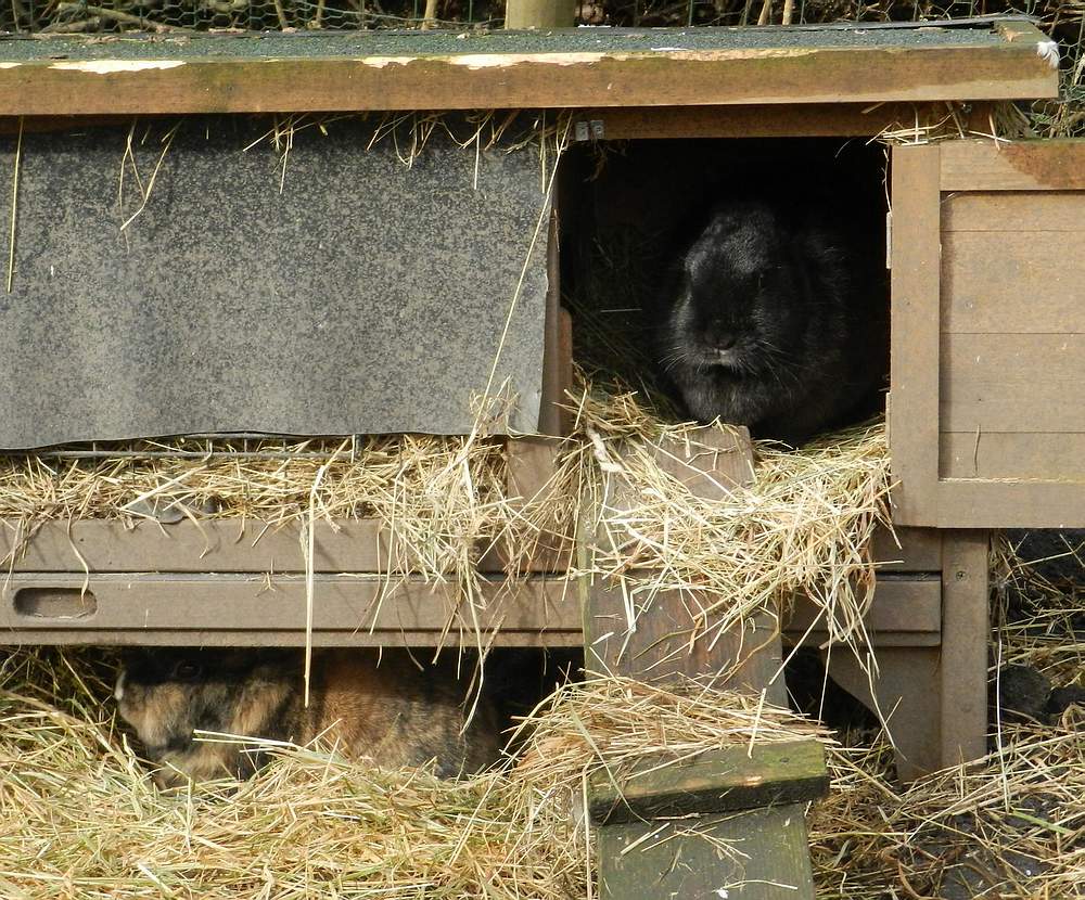 Thomas installeerde zich onder het hok dat was bedoeld als de echtelijke woning van de konijnen.