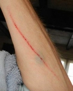 Ik spreek kalmerend, ik houd hem koesterend tegen me aan en Oscar doet of hij zich moet verzetten tegen een serial killer en laat mij gehavend achter.
