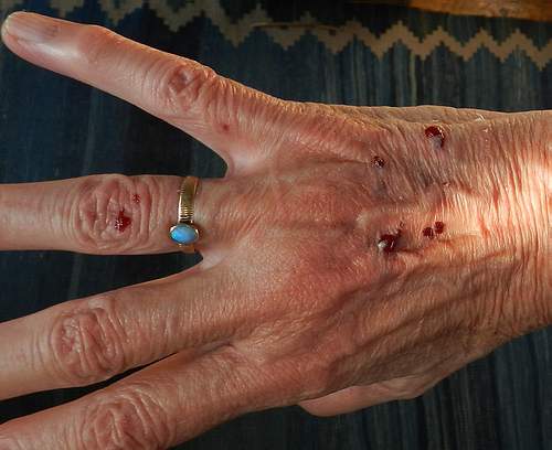 Ze moet nu op zachte handdoek zitten en 2x per dag antibiotica slikken en en 3x per dag gezalfd.