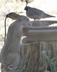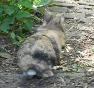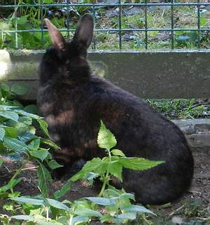 Weer binnen zie ik áchter de ren naast het huis een zwart konijn.