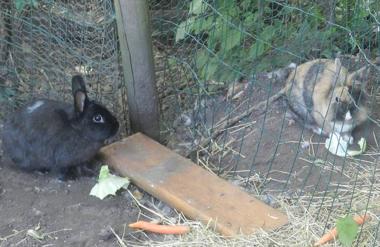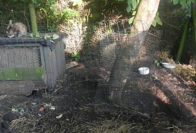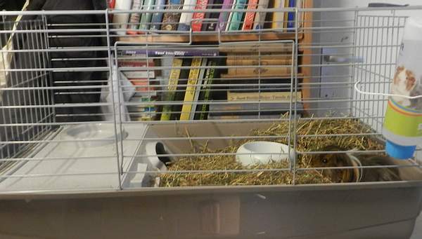 Want Madonna woont nu óók in de bijkeuken en niet meer in de ren (in een kooi) omdat ik denk dat dat beter voor haar is.