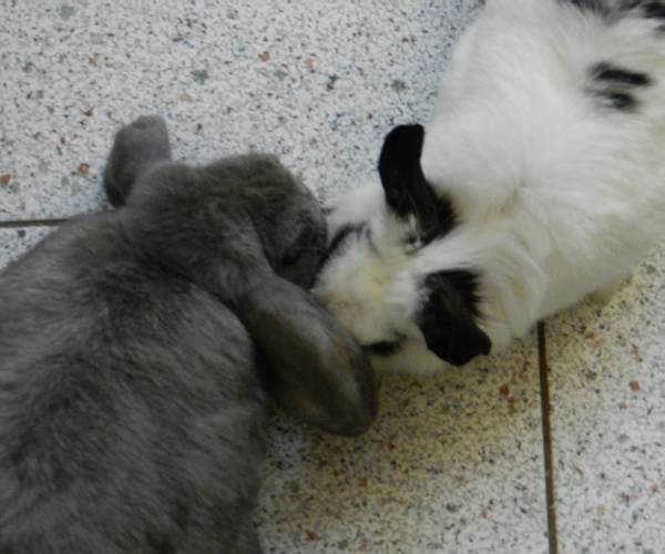 Schijnbare onverschilligheid is geen teken van ongeïnteresseerdheid. Op deze manier peilen ze voorzichtig of ze elkaar kunnen vertrouwen. Let ook goed op tekenen van ontspannen zijn. Wassen ze zichzelf? Hoppen ze rond alsof alles normaal is? Dan beschouwen ze het andere konijn niet als een bedreiging. Hoogstwaarschijnlijk zal de afstand tussen hen steeds kleiner worden, totdat ze ineens tegen elkaar aan gaan liggen en elkaar gaan wassen.