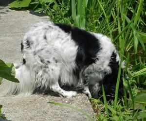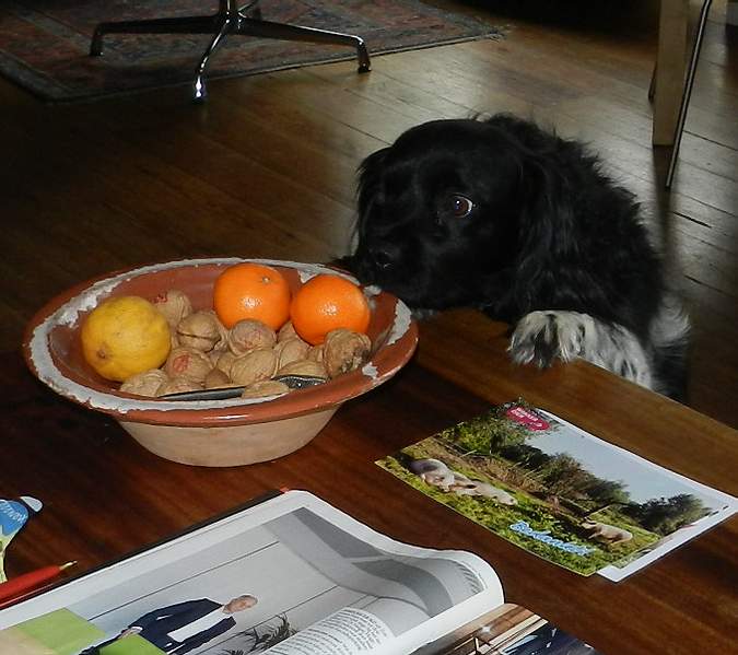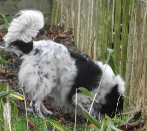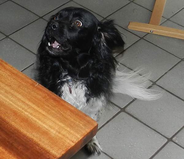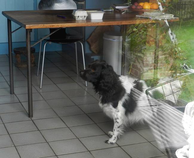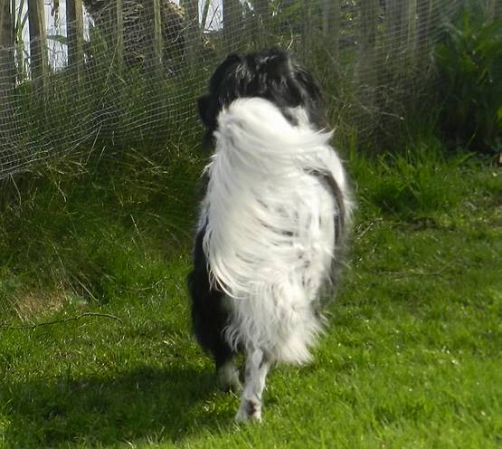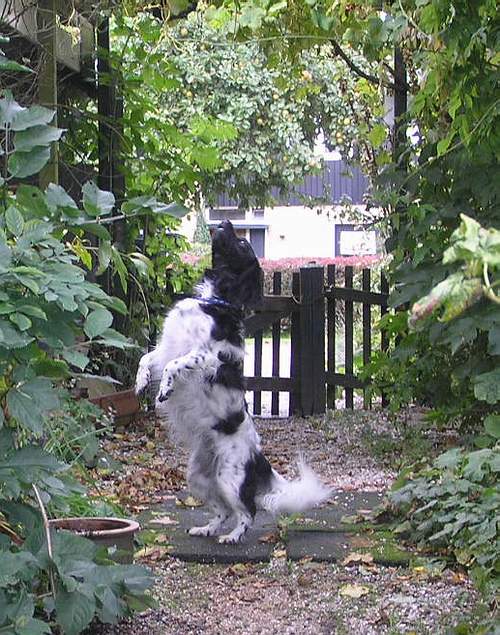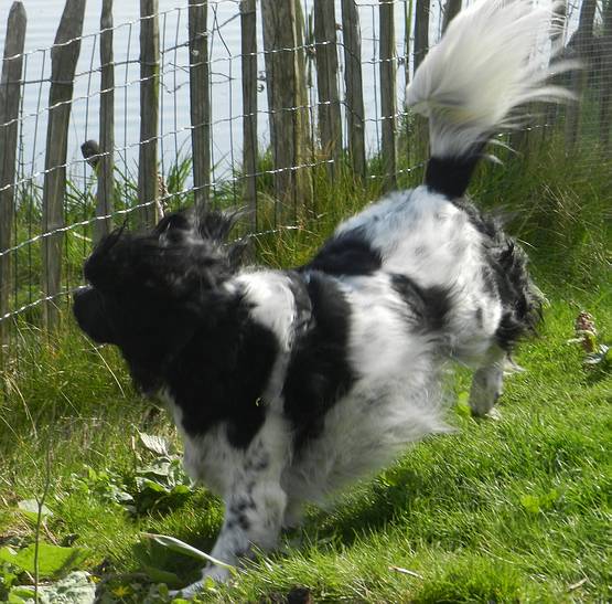 Buiten wordt Tashi erg wild van iets aan de wallenkant dat ik niet zie.