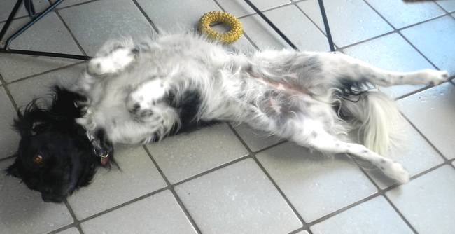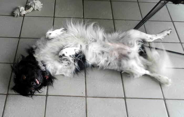 Hoe jammer dus dat Tashi (die ik vandaag een paar keer naar buiten mag laten) zich wanneer ik binnenkom op haar rug werpt om mij haar buikje te laten aaien.