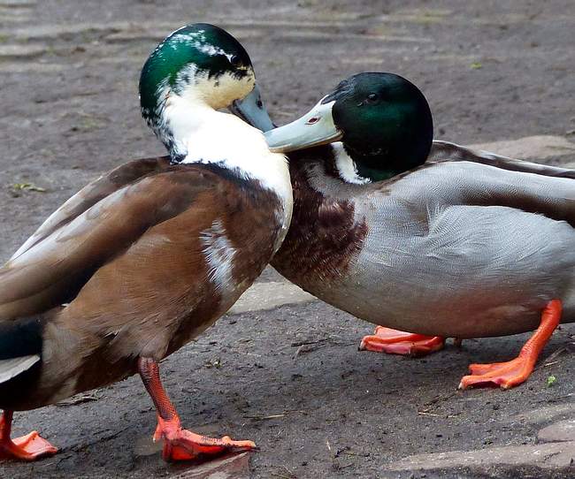 zou het ‘lelijke’ mannetje denken dat het andere mannetje een vrouwtje is? Of zou het een homomannetje zijn? De paring tussen mannetjes en vrouwtjes is ook alles behalve zachtzinnig.