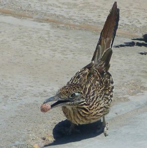 Later die dag zat ik binnen en zag een Roadrunner op de bbq voor de deur springen.