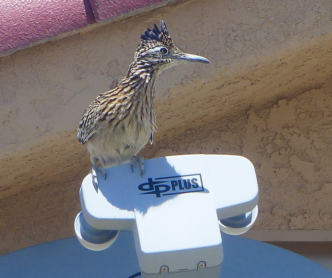 Later die dag zat ik binnen en zag een Roadrunner op de bbq voor de deur springen.