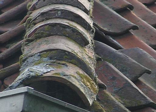 En wanneer die weg is inzoomen op de ontwrichte dakpan.