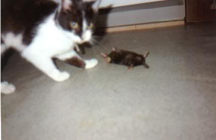eens met inger; ’t is geen mol. een mol, zelfs een mol die door een kat verschalkt is, heeft een diepzwart glanzend velletje; heeft prachtige graafhandjes (inger) en een spitse snuit en zeker geen lange staart. een dood molletje is net een heertje/mevrouwtje in een keurig zwart pakje gekleed.