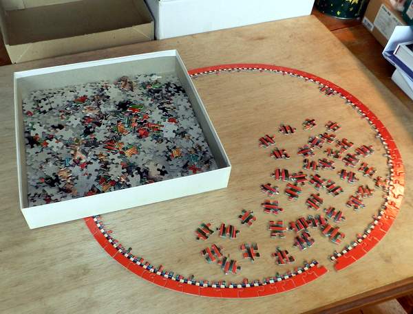 Dus breek ik de rand weer af en doe de puzzel terug in de doos.