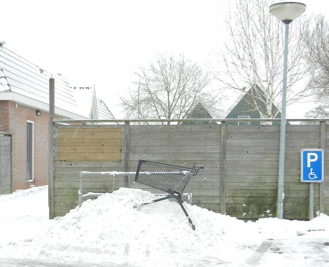 Helaas was het personeel niet toegekomen aan de plek voor de winkelwagentjes.