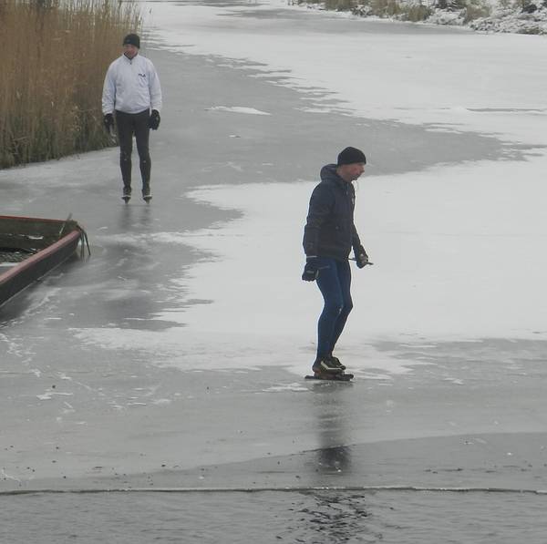 Beteuterde schaatsers bij mijn wak in de Eilandspolder